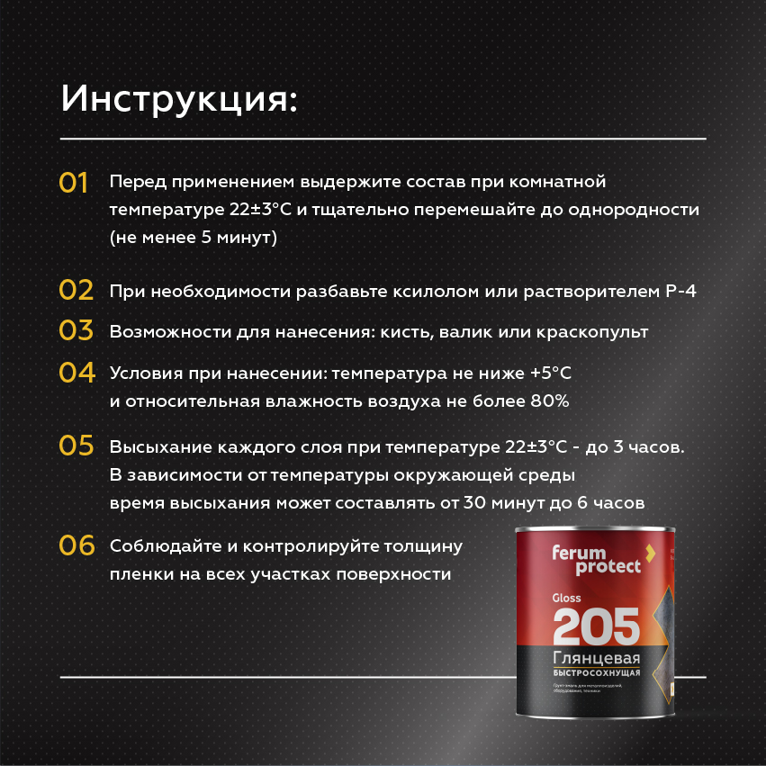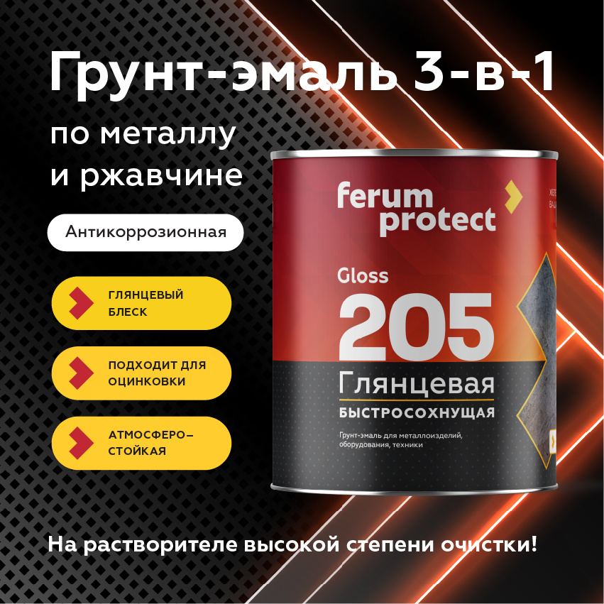 Эмаль-грунт FERUMPROTECT-205 глянцевая алкидная  -  Грунт-эмаль «3в1» с глянцевым покрытием для антикоррозионной защиты металлических поверхностей от бренда ferumprotect с доставкой по России!