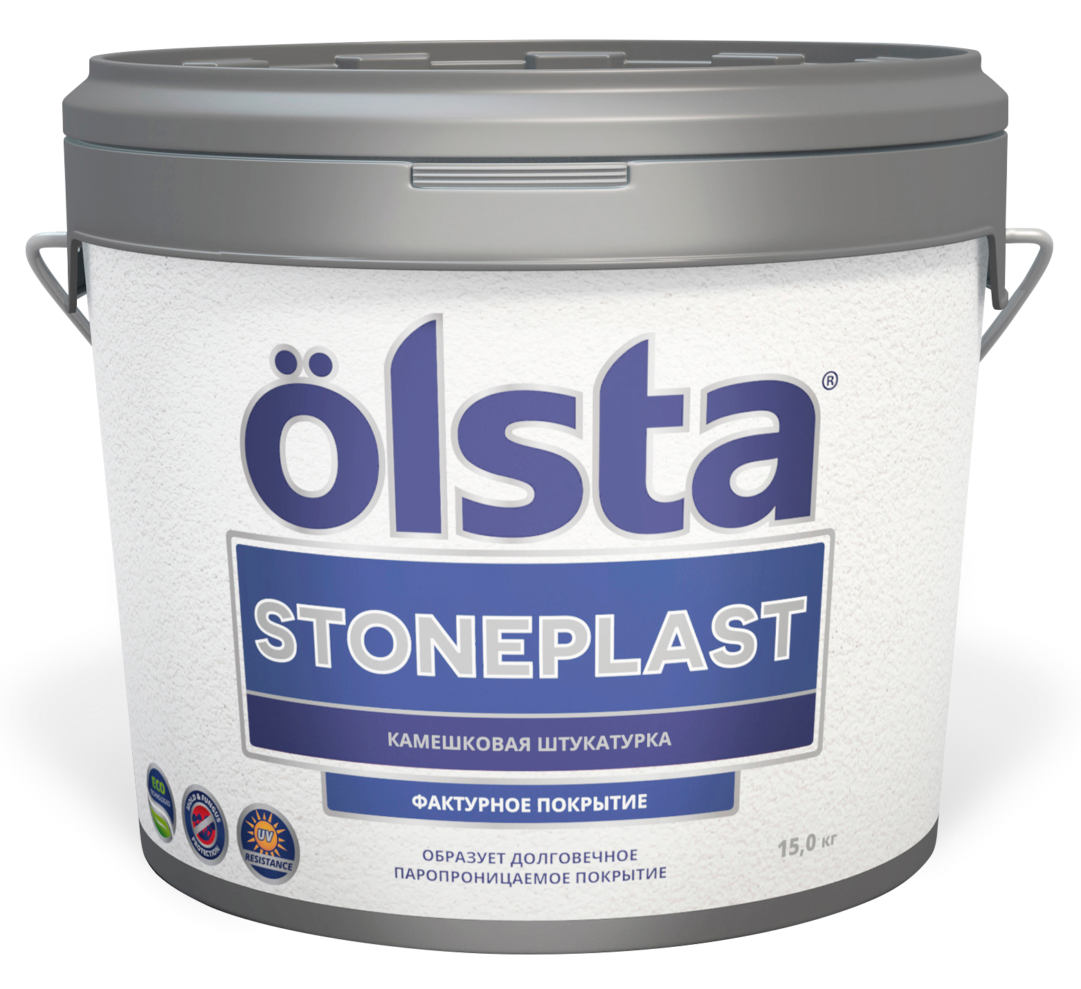 Фактурная штукатурка Stoneplast мелкая фракция  -  ДФактурная штукатурка Stoneplast OLSTA — это непревзойденное решение для создания неповторимого декора как во внешнем облике зданий, так и в интерьерах. Благодаря своей камешковой текстуре, эта декоративная отделка добавляет стенам глубину и природную красоту, создавая эффект натурального камня. Stoneplast OLSTA отличается высокой паропроницаемостью, что обеспечивает комфортные условия внутри помещений и предохраняет стены от конденсата. Мягкий рельеф мелкой фракции придает изделию особую изысканность и элегантность, делая его идеальным выбором для фасадной отделки, которая требует особого внимания к деталям. Использование этой штукатурки позволяет преобразить пространство, придав ему уникальный стиль и долговечность, обеспечивая защиту стен от внешних воздействий и повышая их эстетическую ценность. от бренда OLSTA с доставкой по России!