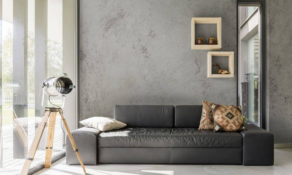 Декоративное фактурное покрытие Art Beton позволяет без больших усилий и особой подготовки стен достоверно сымитировать фактуру гладкой или необработанной бетонной поверхности. При этом поверхность не холодная, как при использовании настоящего бетона, а теплая на ощупь. Материал идеально подходит для современных интерьеров в стиле лофт.