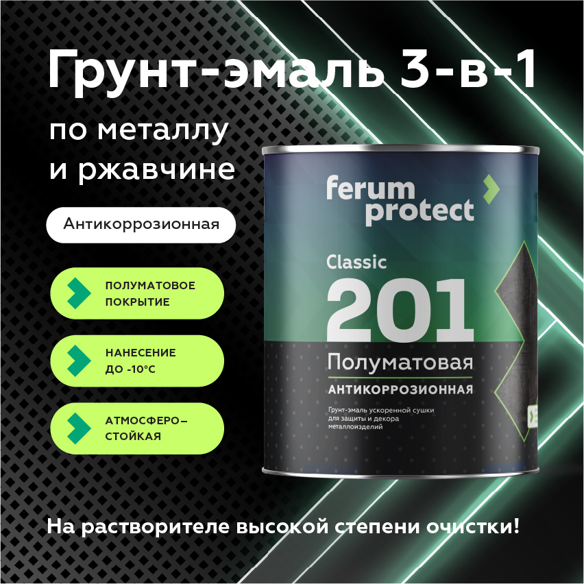 FERUMPROTECT-201@classic классическая полуматовая грунт-эмаль «3 в 1» ускоренной сушки для защиты и декора металлоизделий