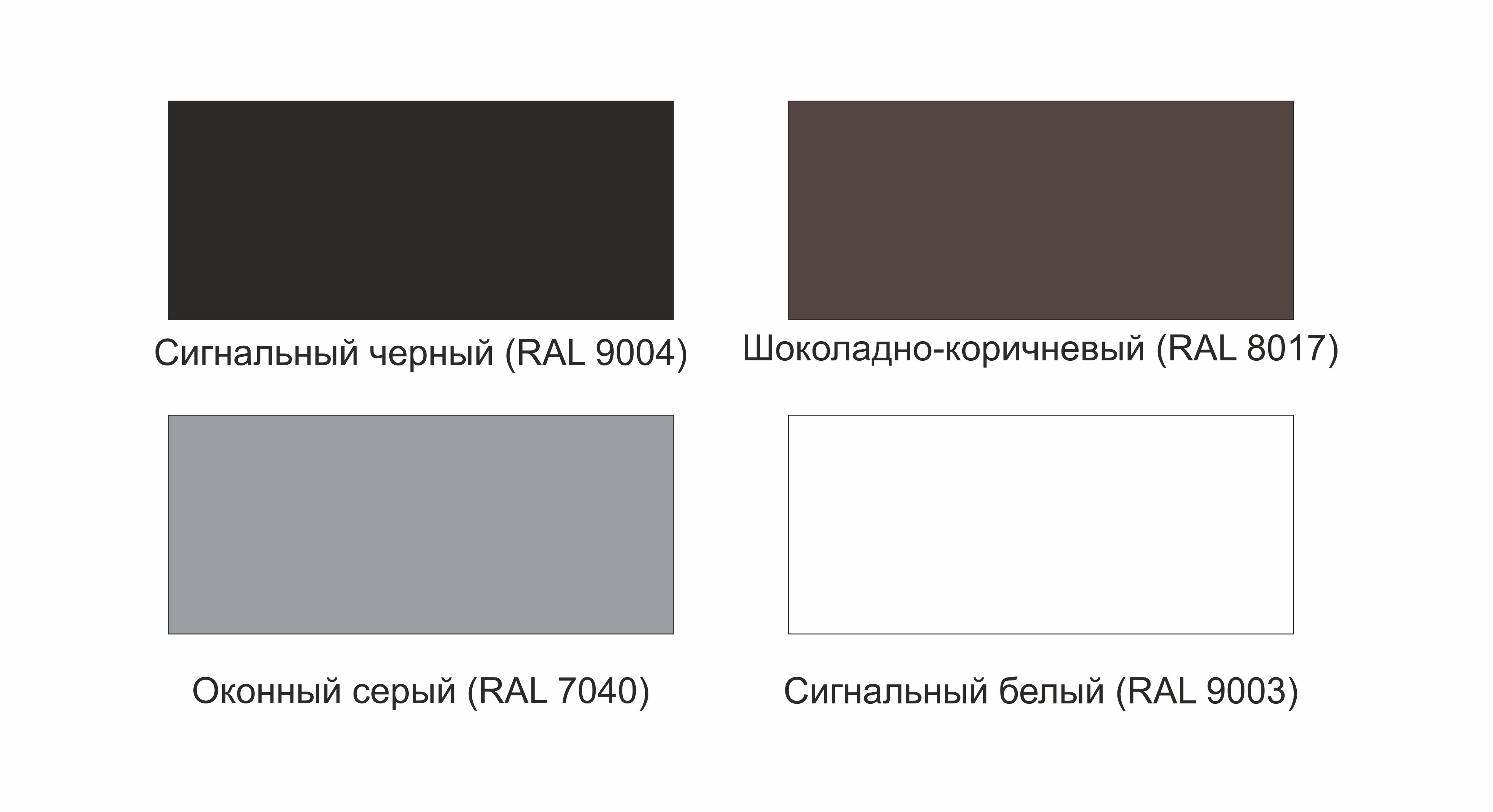 Названия цветов:  RAL- цвета по заказу, срок готовности от 30 мин, компьютерная колеровка по согласованию.