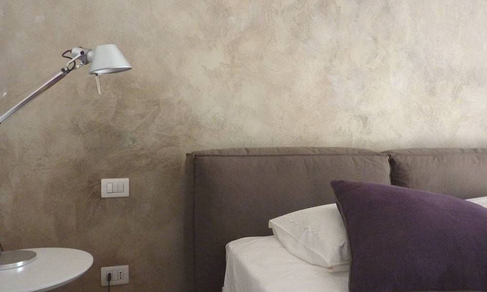 5. После высыхания покрытия (24 часа) отшлифуйте поверхность мелкой наждачной бумагой. Для усиления декоративного эффекта рекомендуется после полного высыхания фактуры наносить крупнопористой губкой материалы: Seta, Lecetezza, Velluto, Cera Décor, Pastello Vernici, Perla Vernici, Fleur Deco. При использовании в качестве финишного покрытия Pastello Vernici, необходимо сначала нанести разведённый водой 1:1 грунтовочный слой неколерованного материала для выравнивания впитываемости поверхности.