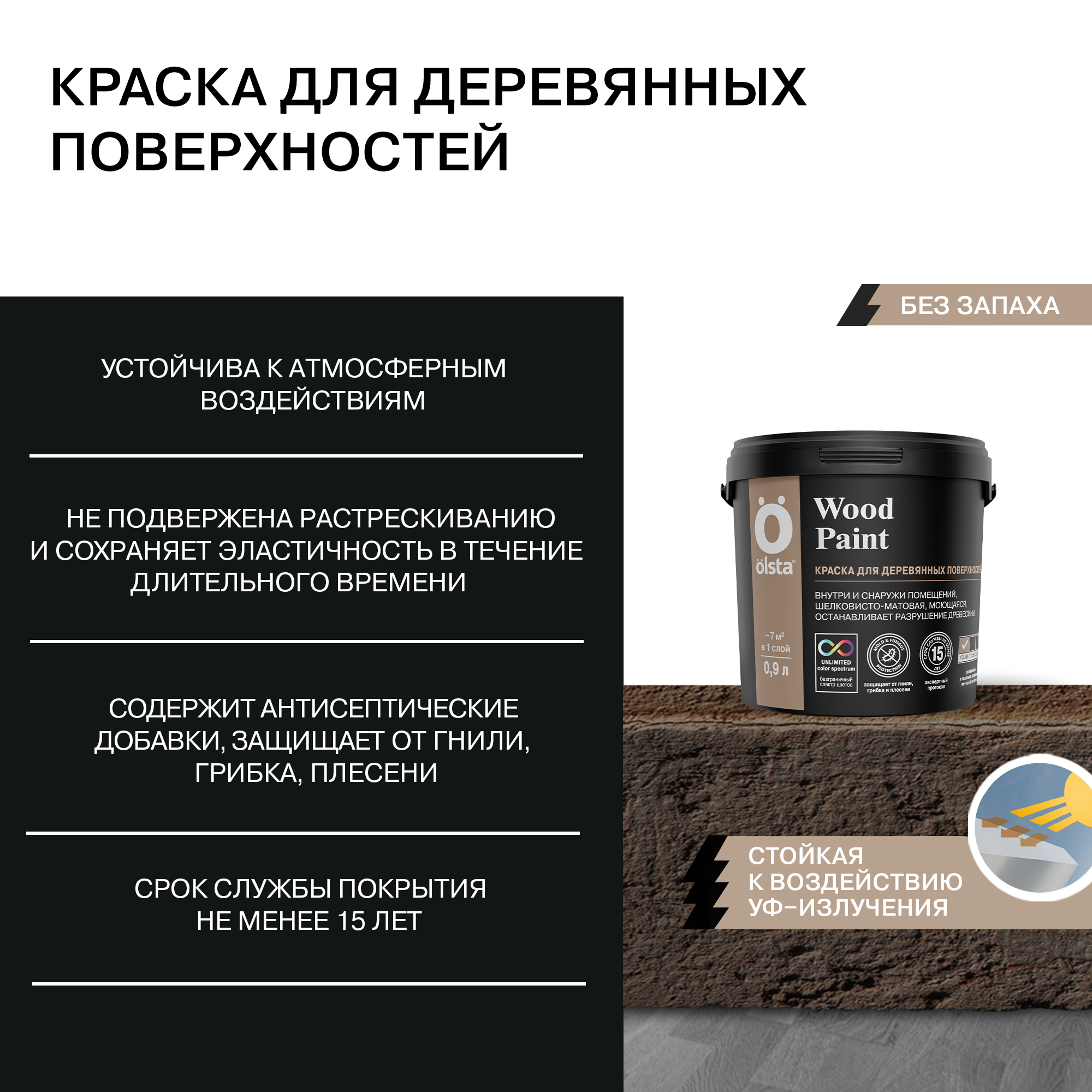 Краска для деревянных поверхностей Wood paint - Высококачественная краска для наружных и внутренних работ по дереву от бренда OLSTA с доставкой по России!