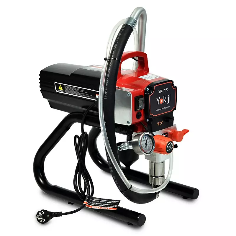 Окрасочный аппарат безвоздушный YOKIJI YKJ 120 - Окрасочный аппарат безвоздушного типа YOKIJI YKJ 120 — это профессиональное решение для мастеров-маляров, требующееся для высокопроизводительных работ с лакокрасочными материалами. Этот краскораспылитель отличается исключительной удобностью в использовании и обеспечивает непревзойденную быстроту нанесения покрытий. Благодаря безвоздушной технологии, YKJ 120 позволяет достигать идеальной ровности покрытия, обеспечивая точный контроль расхода материала и исключая образование капель и разбрызгивания. Комфортный дизайн и эргономичные элементы управления делают работу с этим устройством максимально простой и безопасной, что делает его незаменимым инструментом как для профессионалов, так и для любителей, стремящихся к безупречному качеству отделки. YOKIJI YKJ 120 подходит для широкого спектра применения — от небольших домашних проектов до масштабных коммерческих задач, обеспечивая стабильность производительности и долговечность эксплуатации. от бренда YOKIJI с доставкой по России!