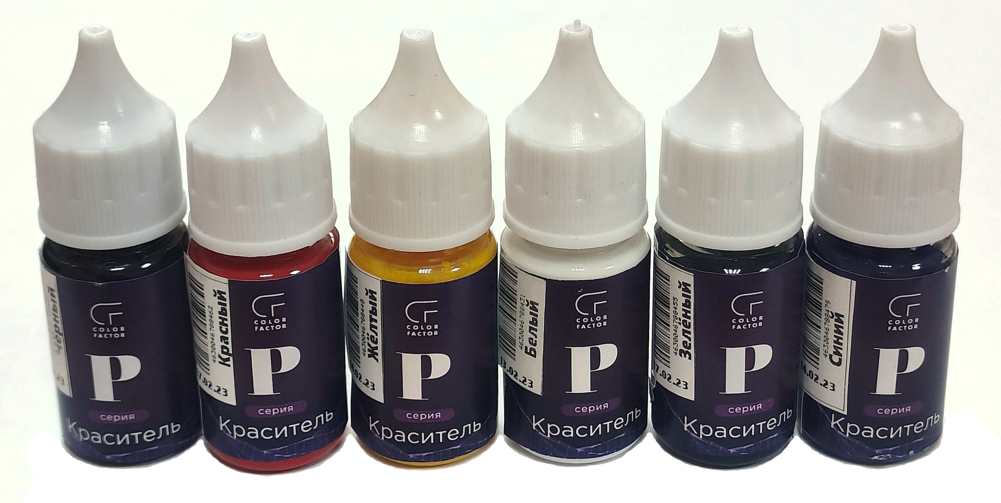 Набор красителей для смол 6 шт - белый, черный, зеленый, желтый, синий, красный